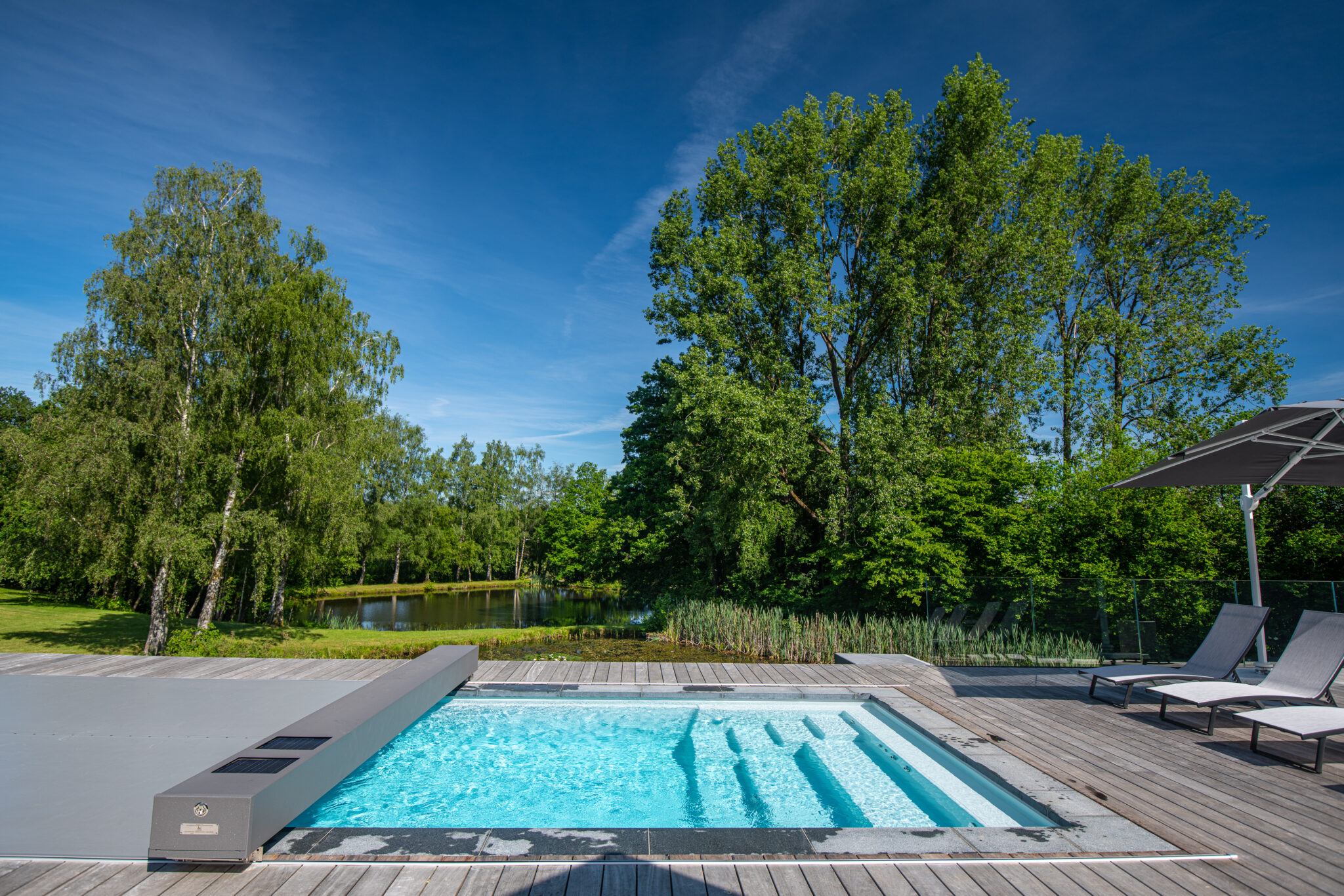 Une couverture performance qui résiste au plein soleil d’été, aux vents, et à la neige. De plus, la couverture protège la piscine de la chutes des feuilles.